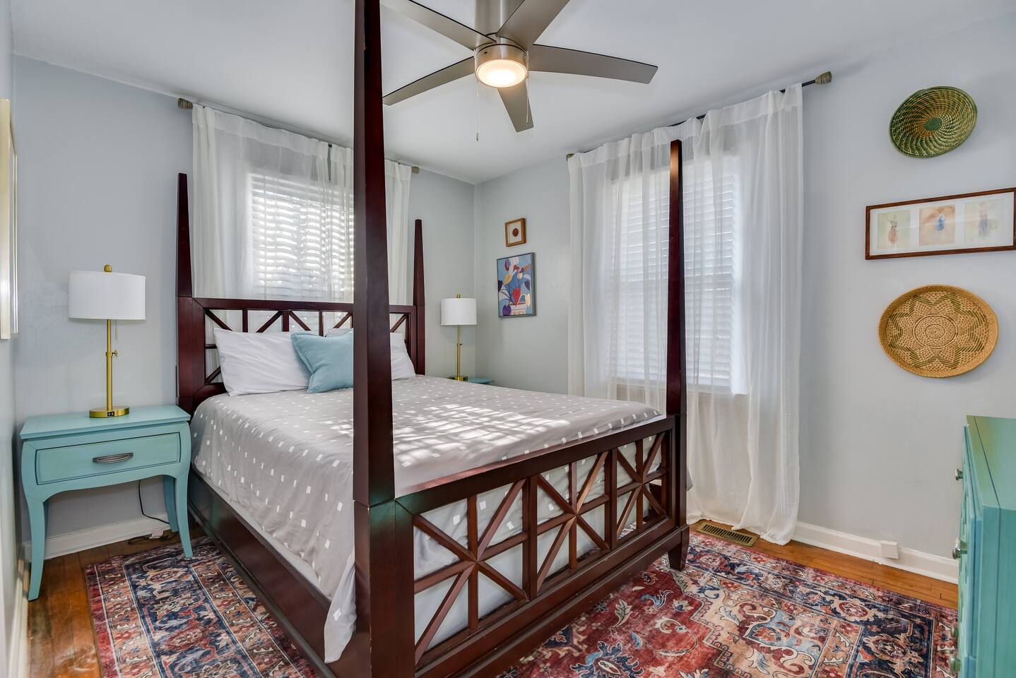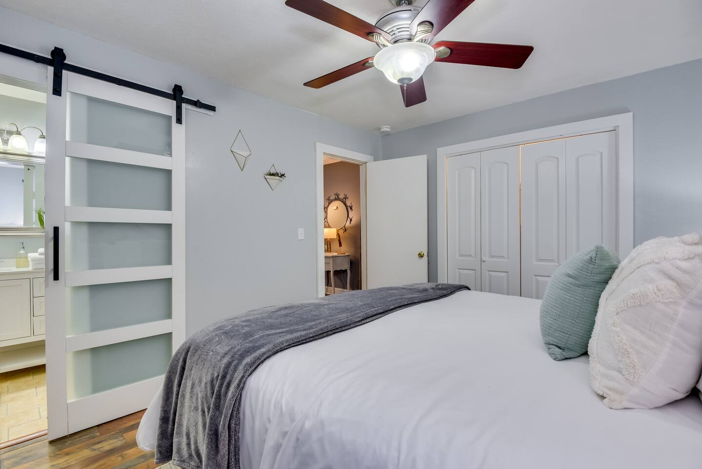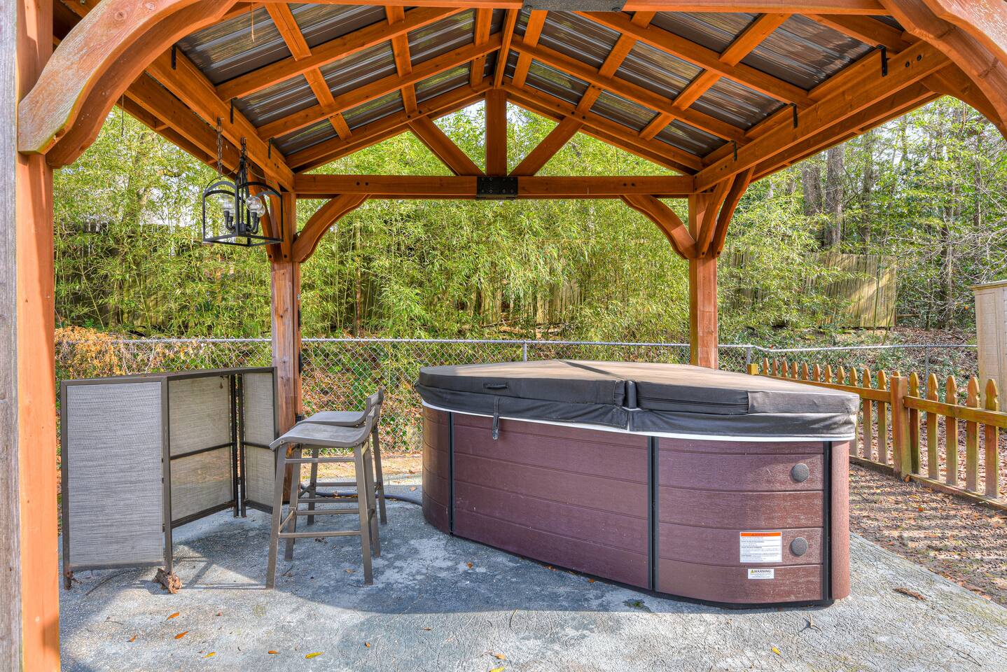 Inside: 🏠 -Bedroom 1: Master suite with king bed, nightstand, dresser, closet, TV, ensuite bathroom -Bedroom 2: Queen bed with night stand, dresser, closet -Bedroom 3: Queen bed with night stand, dresser, closet -Bedroom 4: Bunk bed (two twin beds), closet, desk w/ chair -Full Bathroom 1: Inside master suite, tub/shower combo -Full Bathroom 2: Located in hall near bedrooms, walk in shower -Kitchen: Stainless steel appliances and fully stocked with gas stove/oven, fridge/freezer, microwave and breakfast table seats 3 -Dining room: Large table seats 8 -Living room: Sectional sofa, 2 chairs, TV -Laundry room: Full size washer and dryer Outside: 🌳 -Deck with patio table seats 4, gas grill -Free parking in the driveway up to 3 vehicles Things you'll love ❤️ -Coffee station with coffee pot and Keurig -Inviting and colorful interior design -Outdoor hot tub (open seasonally from Nov-Feb only)