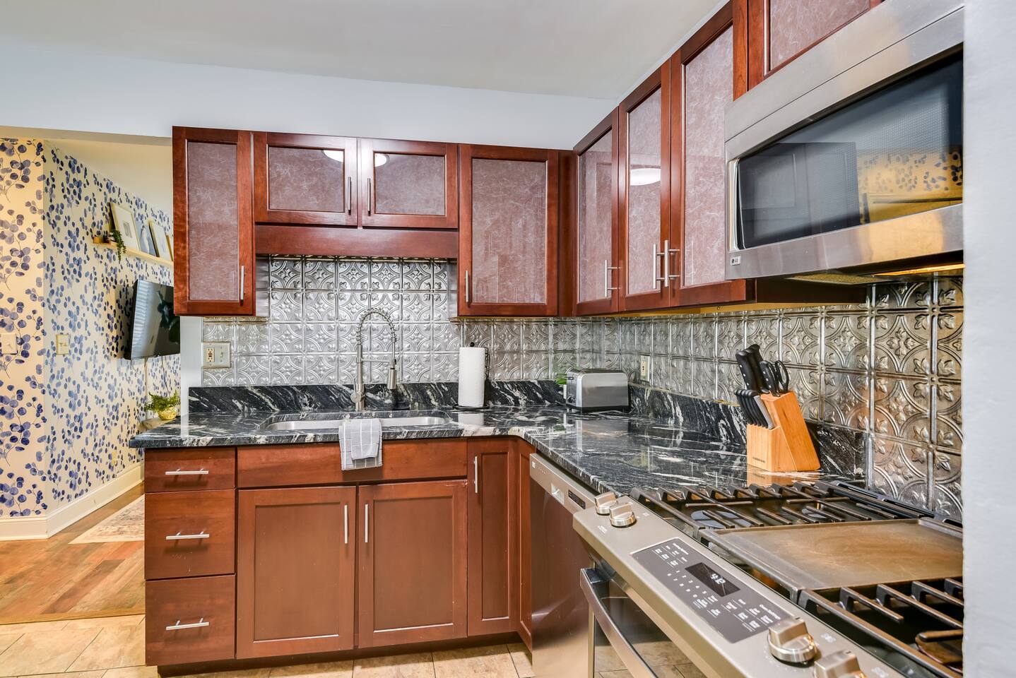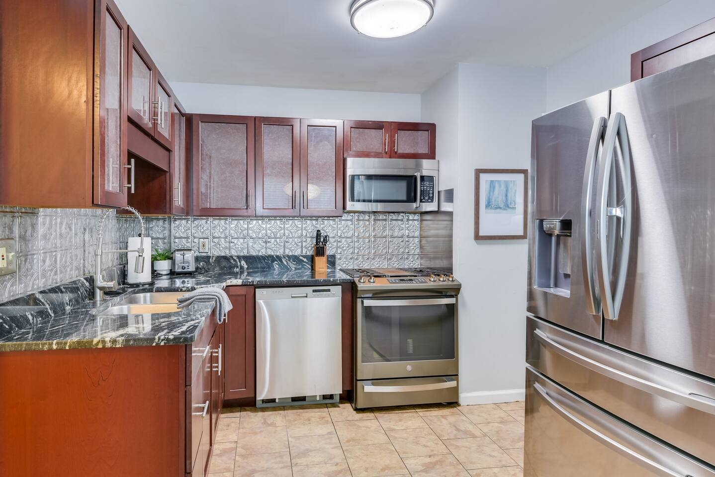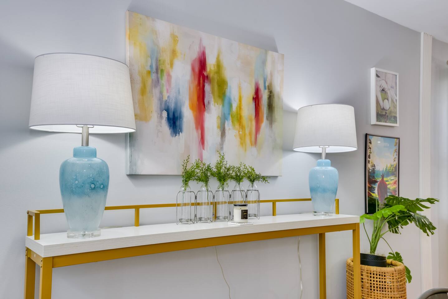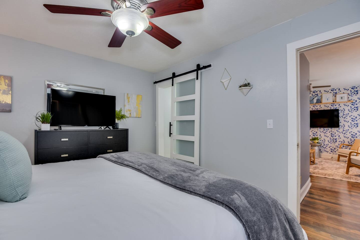 Inside: 🏠 -Bedroom 1: Master suite with king bed, nightstand, dresser, closet, TV, ensuite bathroom -Bedroom 2: Queen bed with night stand, dresser, closet -Bedroom 3: Queen bed with night stand, dresser, closet -Bedroom 4: Bunk bed (two twin beds), closet, desk w/ chair -Full Bathroom 1: Inside master suite, tub/shower combo -Full Bathroom 2: Located in hall near bedrooms, walk in shower -Kitchen: Stainless steel appliances and fully stocked with gas stove/oven, fridge/freezer, microwave and breakfast table seats 3 -Dining room: Large table seats 8 -Living room: Sectional sofa, 2 chairs, TV -Laundry room: Full size washer and dryer Outside: 🌳 -Deck with patio table seats 4, gas grill -Free parking in the driveway up to 3 vehicles Things you'll love ❤️ -Coffee station with coffee pot and Keurig -Inviting and colorful interior design -Outdoor hot tub (open seasonally from Nov-Feb only)
