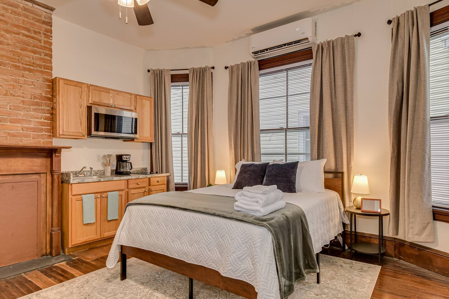 Charming Unit B studio apartment in a historic 1901 Victorian mansion near downtown Augusta! This cozy first-floor space features a queen bed, full bath, and a fully stocked kitchenette. Enjoy shared access to a stylish living room and washer/dryer. Perfect for solo travelers or couples looking for a unique stay with modern comforts and vintage charm. Just a short drive to local attractions, restaurants, the beautiful Riverwalk, and right next door to the Fox’s Lair, a hidden underground bar!