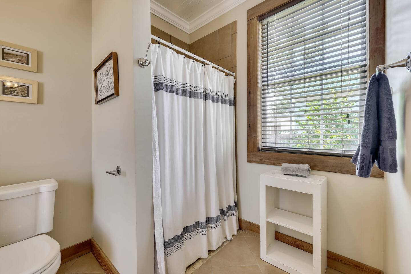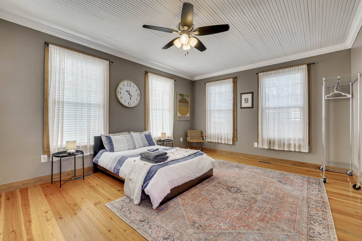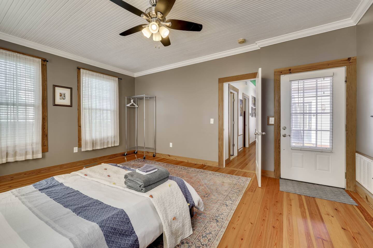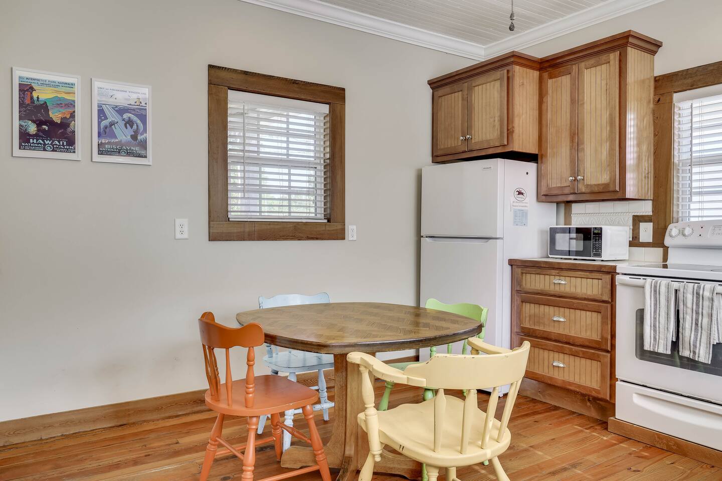 Horseshoe Cottage offers a cozy home and walkable distances for entertainment :) Indoors - single story home with the entrance sitting on the deck that has a few small steps to get up Bedroom 1: Large and spacious with a full bed and attached bathroom Bedroom 2: Two twin beds next to a full bathroom Bathroom 1: Attached to master bedroom, has a tub and stacked washer and dryer Bathroom 2: Attaches to both Bedroom 2 and the hallway Fully equipped kitchen: - dining table gets plenty of natural light throughout the day - Plenty of cooking utensils and dishes so you can enjoy your stay fully Dining area: Seats 4 Living room: -cozy sitting area -smart tv right off the covered front porch overlooking York street -Bluetooth speaker Outdoors: Large Driveway for up to 6 vehicles Large back yard for pets to run around in, please note that the property is not fully fenced in