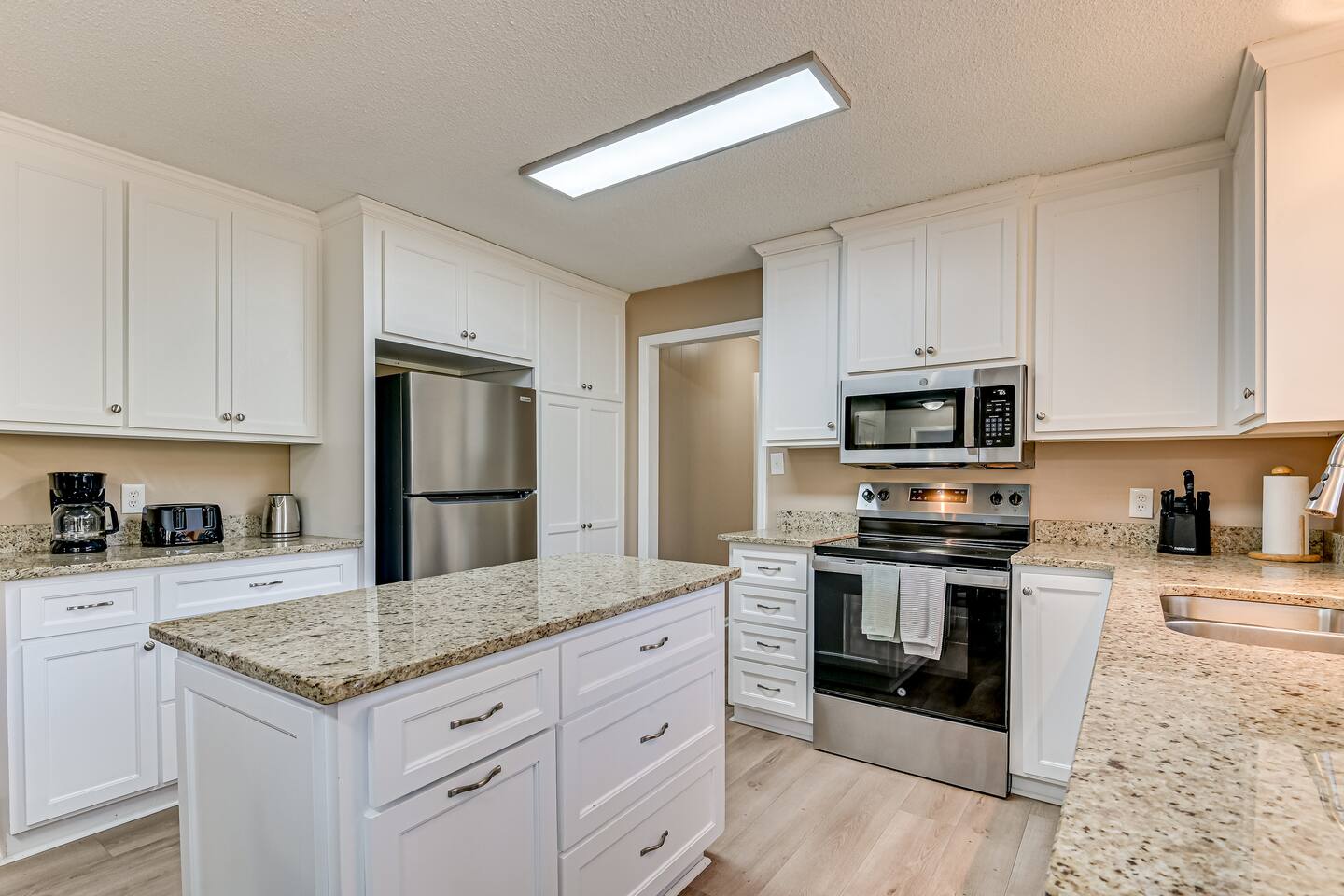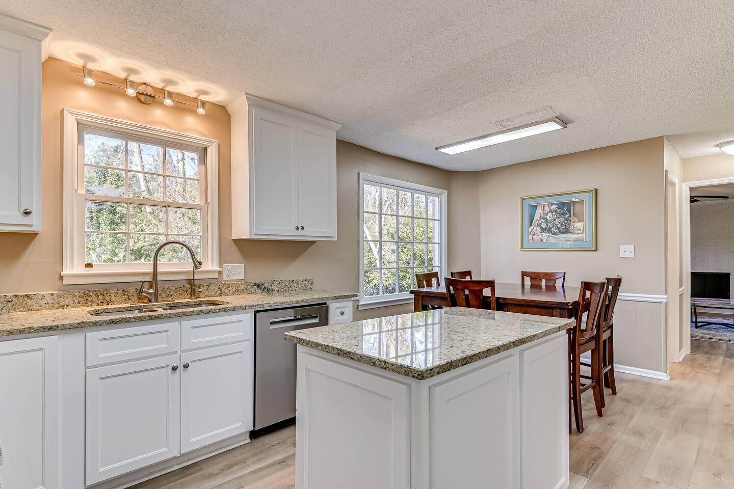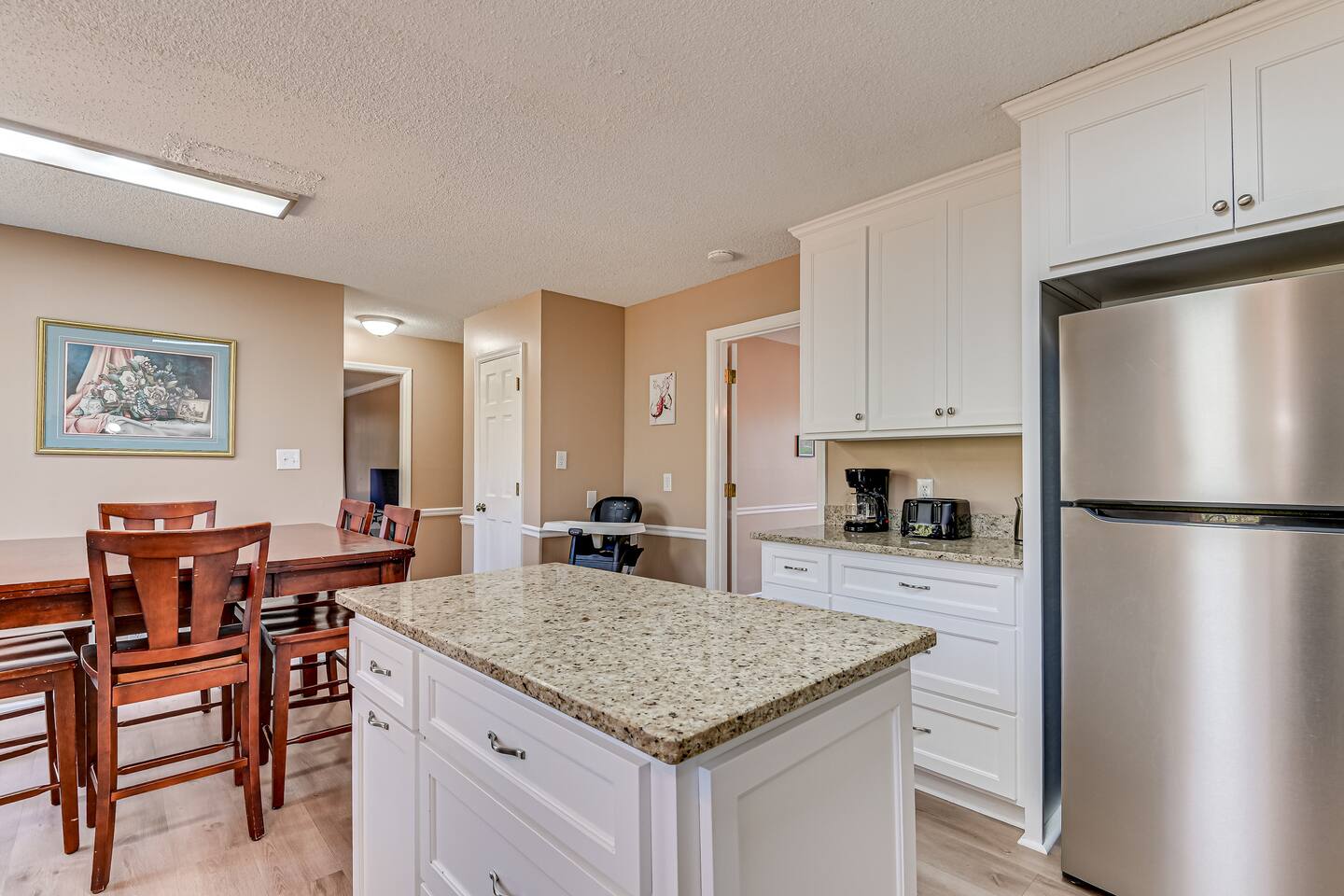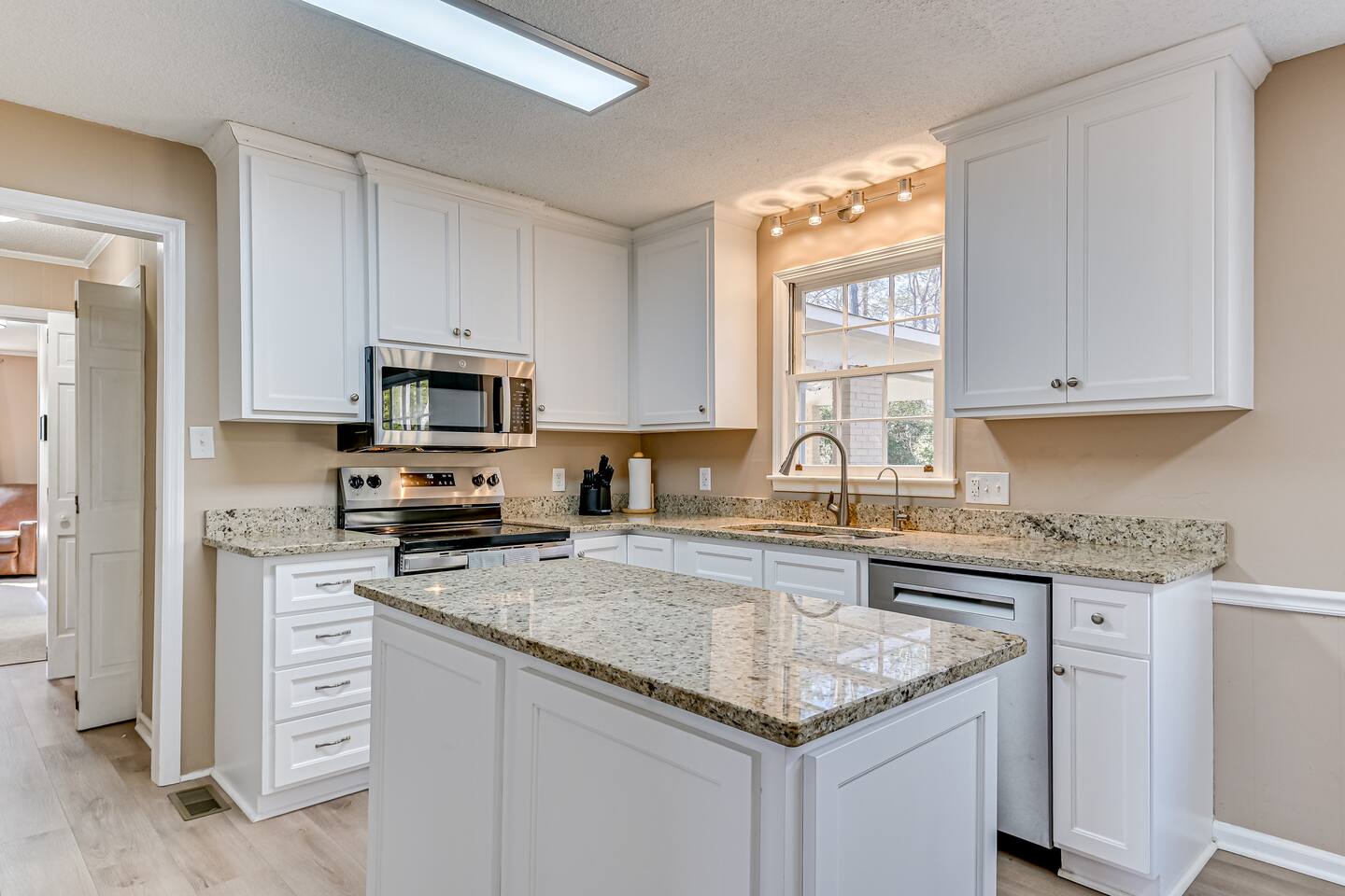 Hosted by Augusta's local STR experts - Garden City Hosts, LLC 🌷 Inside: 🏠 Downstairs -Kitchen: Stainless steel appliances and fully stocked with electric stove/oven, fridge/freezer, microwave, coffee pot, and breakfast table seats 6 Dining Room: Seats 6 -Laundry room: Full size washer and dryer -Living room 1: Sectional Sofa, TV -Living room 2: Sectional Sofa -Living room 3: Queen pullout sofa, 2 chairs, TV, Pool Table! -Office: Built in desk and chair -Full bathroom -Half bathroom Upstairs -Bedroom 1: Master suite with king bed, night stand, dresser, closet, ensuite bathroom with walk in shower -Bedroom 2: King bed, night stand, dresser, closet -Bedroom 3: Queen bed, night stand, dresser, closet -Bedroom 4: Queen bed, night stand, dresser, closet -Full Bathroom: Located in hall near bedrooms, tub/shower combo Outside: 🌳 -Carport -Free parking in the driveway