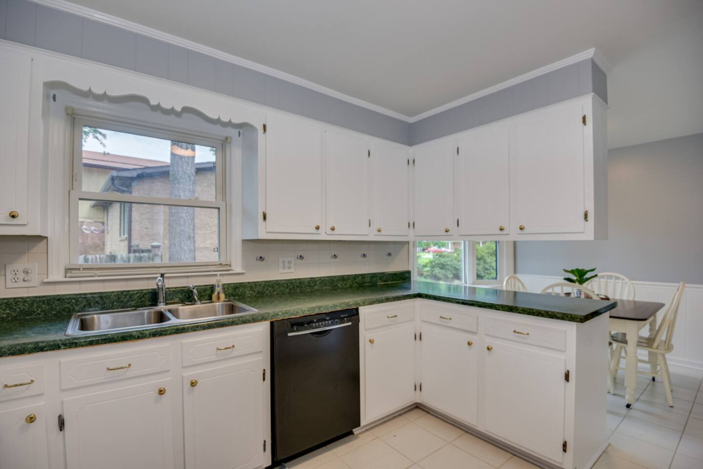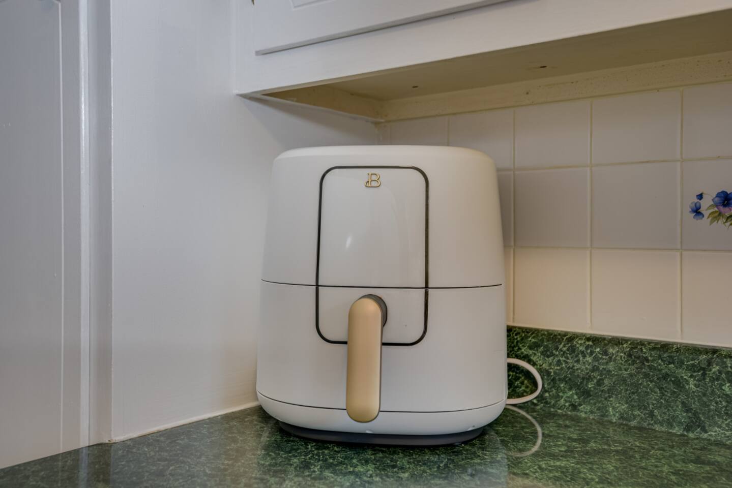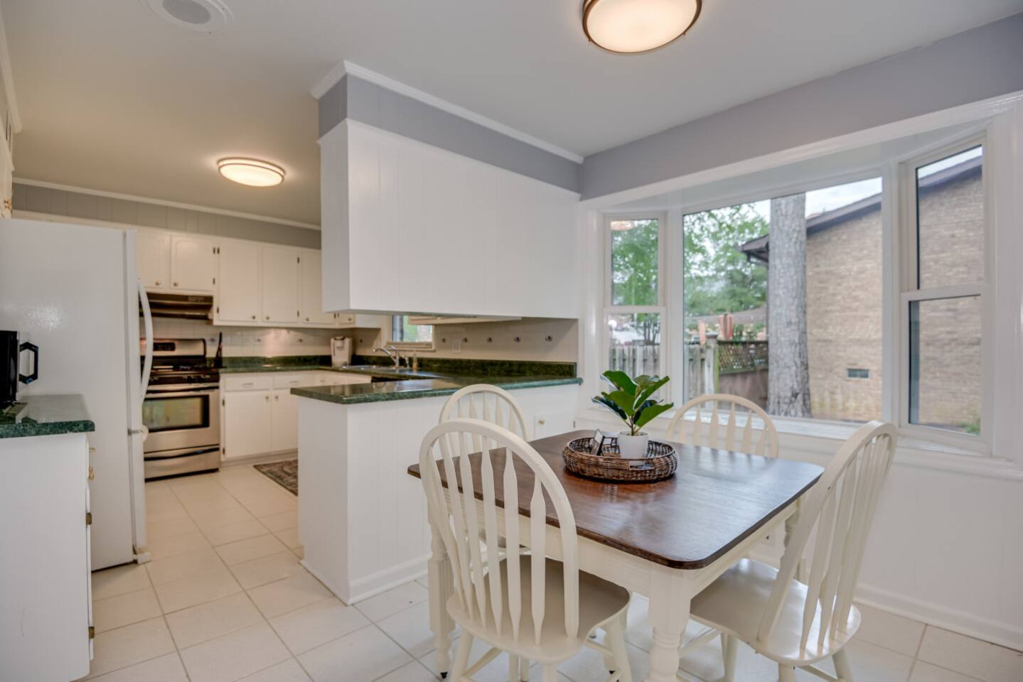 All one level home with 2 entrances (front door and rear entrance under carport). Bedroom 1: Queen bed, closet, large screen TV, ensuite bathroom Bedroom 2: Queen bed, closet, large screen TV Bedroom 3: Queen bed, closet, large screen TV Bedroom 4: Two full size beds, large screen TV Living room 1: Sectional seating for 10 and large screen TV Living room 2: Game room with pool table and arcade game Dining room: Table seats 6 Kitchen: Electric stove/oven, ample storage, well stocked, full size fridge, breakfast table seats 4 Sunroom: Workspace with chair, seating for 2, large screen TV Backyard: fenced in with patio, gas grill, table and chairs seats 2