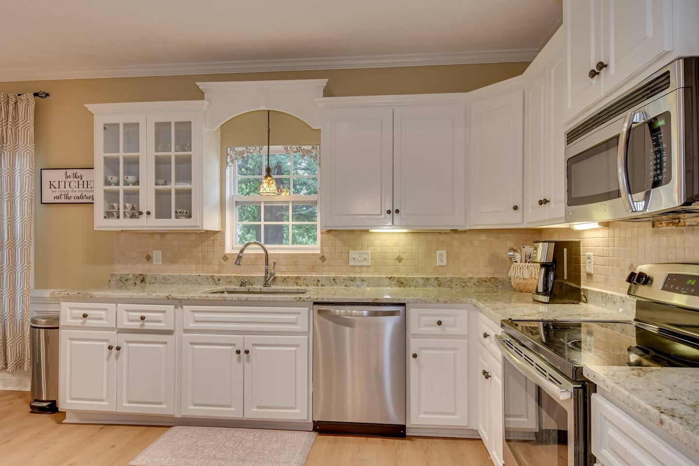 Upstairs: Bedroom 1- King bed with ensuite Bathroom Bedroom 2- Queen bed Bedroom 3- Queen bed Bedroom 4- Two Full beds and desk with chair Hallway Bathroom Laundry room Air mattresses available upon request Downstairs: Living room with Flat screeen TV Dining room seats 8 Kitchen with breakfast table Outside: Deck with grill Private backyard Driveway fits up to 4 vehicles