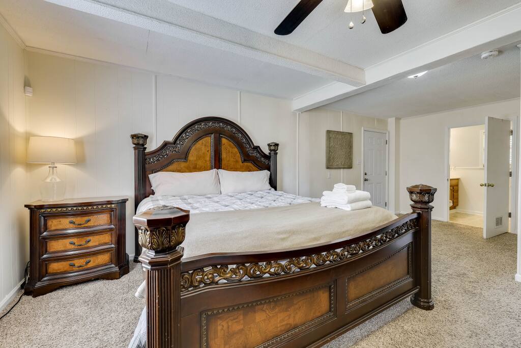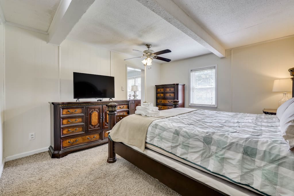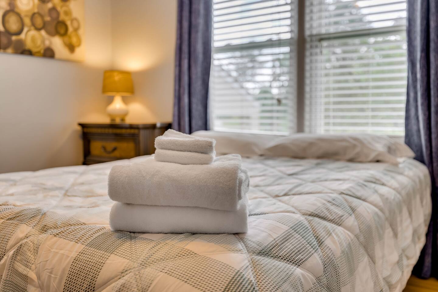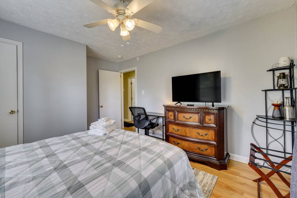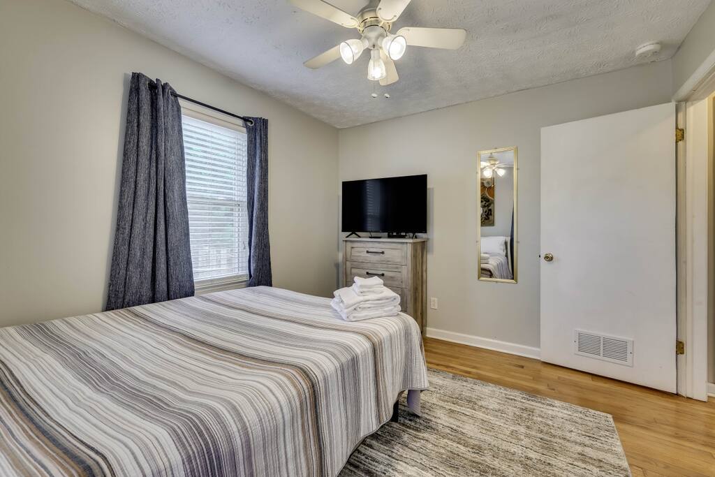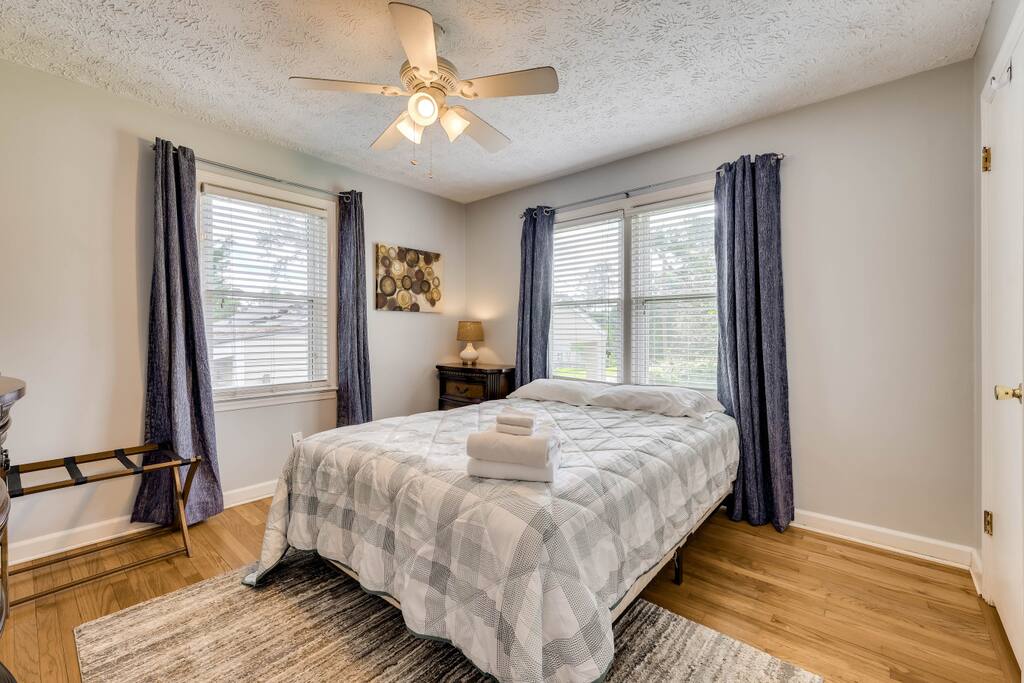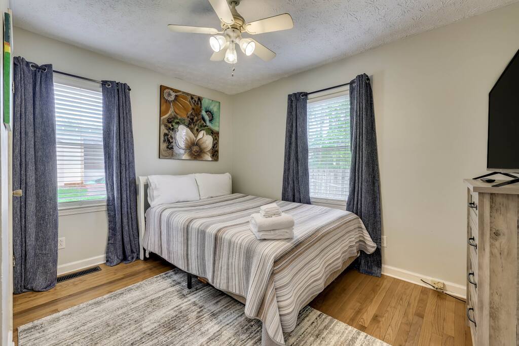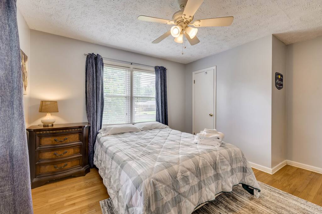 Each bedroom includes bed, mattress w/cover, freshly washed linens, mirror, dresser, and closet. There is also a power cube with usb, and furniture caddy in all the rooms to make your travels a breeze. Kitchen is fully stocked for groups that like to cook and entertain 🍽. Outdoor patio set with grill available for use. Driveway fits up to 4 vehicles with additional parking available on the street.