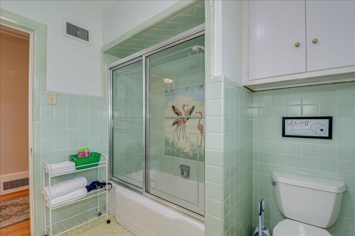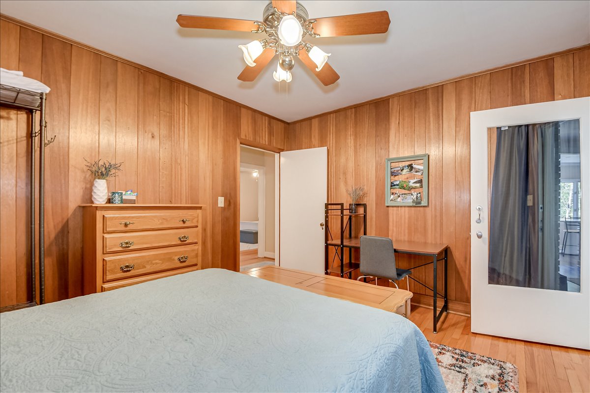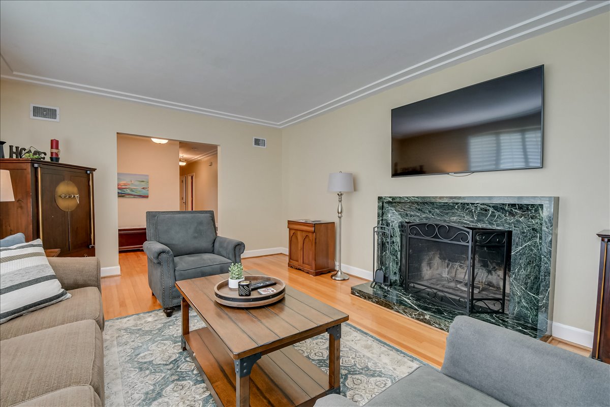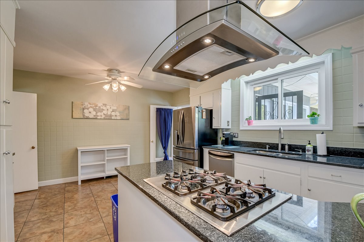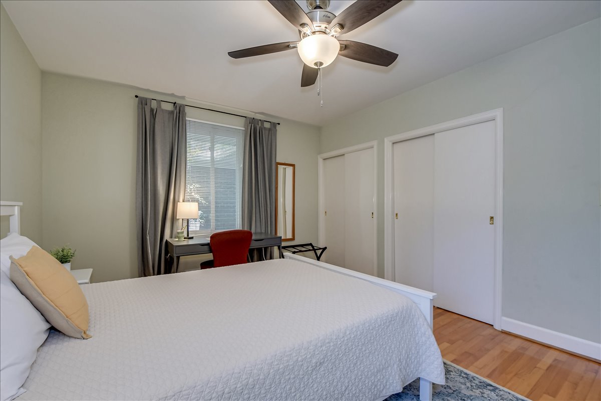 This 2,995 sq ft home features extra large rooms with updated furniture, wood floors, modern kitchen, wet bar, spacious deck for entertaining, and double lot and back yard. All rooms have luggage rack and power cube. Inside: Kitchen: Open concept with stainless steel appliances, gas stove and wet bar Master suite 1: Queen bed, private bathroom, desk, dresser, closet, TV Bedroom 2: King bed, desk, dresser, closet, TV Bedroom 3: Queen bed, desk, dresser, closet Bedroom 4: Queen bed, desk, dresser, clothes rack Hall Bathroom: Centrally located between bedrooms Living room 1: 65" flat screen TV and sectional, 2 chairs Dining area 1: Square wood table with seating for 8 Outside: Massive deck with patio table seats 6, lounge chairs (2), patio umbrellas, gas grill, outdoor speakers, and back yard. Parking in the driveway up to 6 vehicles