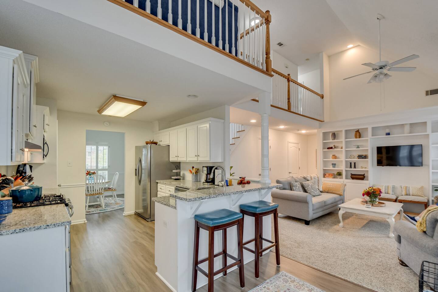 Very spacious and open concept home sure to be comfortable for a group of 6. Kitchen features granite counter tops, gas stove, stainless steel appliances, and dining room table that seats 6. Living room TVs are 43" downstairs and 46" upstairs in the loft. Loft also include queen size pullout couch. Patio furniture seats up to 6 and include enclosed as well as outdoor seating so you can enjoy the warm Georgia weather at its finest!