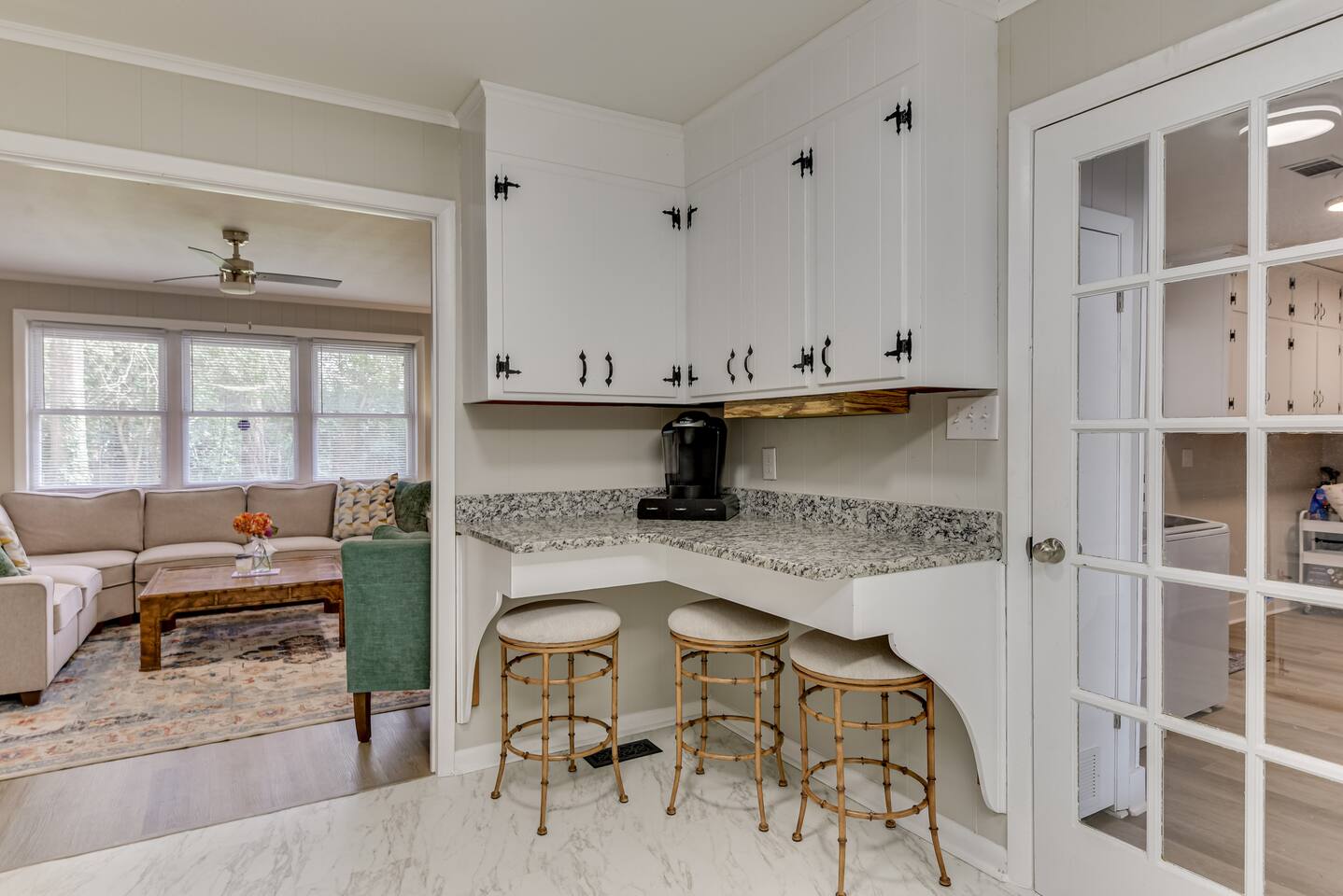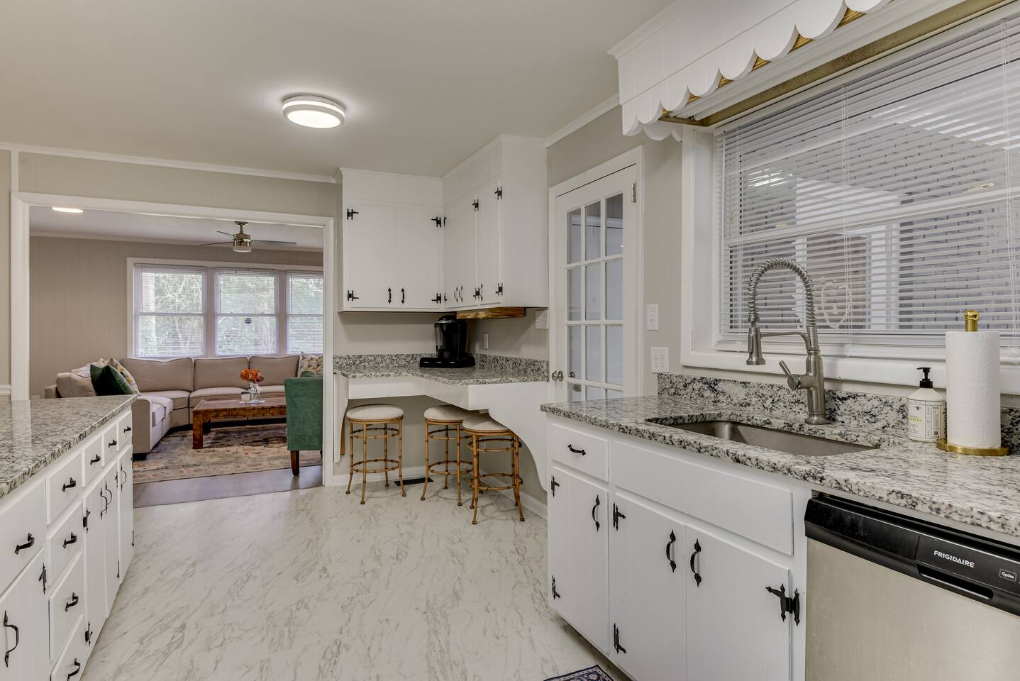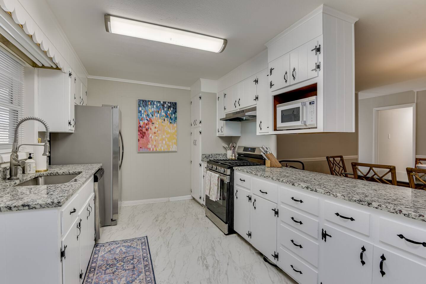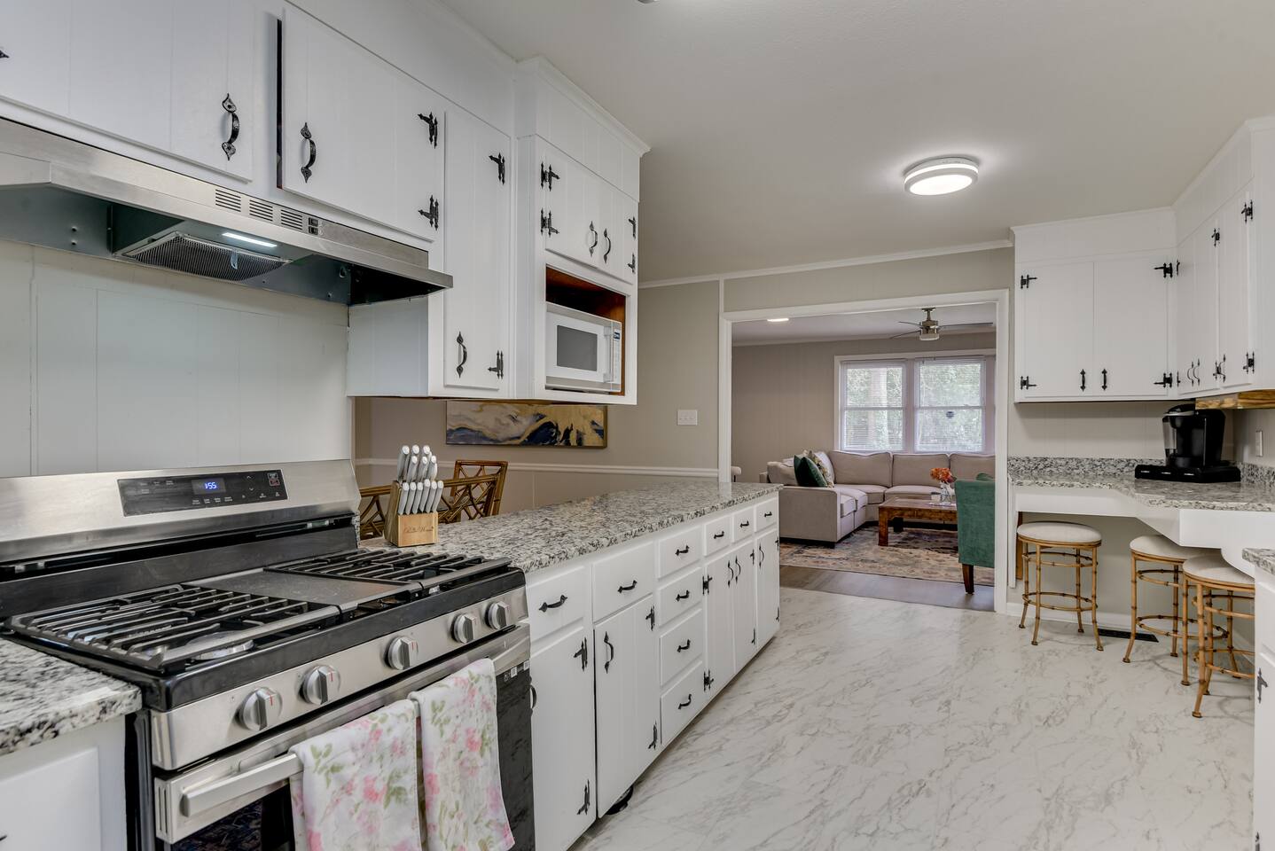 Inside: 🏠 -Bedroom 1: Queen bed w/ ensuite full bathroom 1 -Bedroom 2: Queen bed w/ ensuite full bathroom 2 -Bedroom 3: Queen bed w/ ensuite full bathroom 3 -Bedroom 4: Queen bed w/ ensuite full bathroom 4 -Bedroom 5: Queen bed -Bedroom 6: Full Bed -Full bathroom 5: Located in hall near bedrooms -Living room: Sofa, Loveseat, coffee table, TV -Kitchen: Electric stove/oven, fridge/freezer, microwave, coffee pot -Dining room: Table seats 6 -Laundry: Full size washer and dryer Outside: 🌳 -Private backyard -Free parking in the driveway Things you'll love ❤️ -Space set up perfectly for up to 12 guests -Stylish design throughout the home -Walking distance to the world famous Augusta National Golf Course! 15 min/0.7 miles