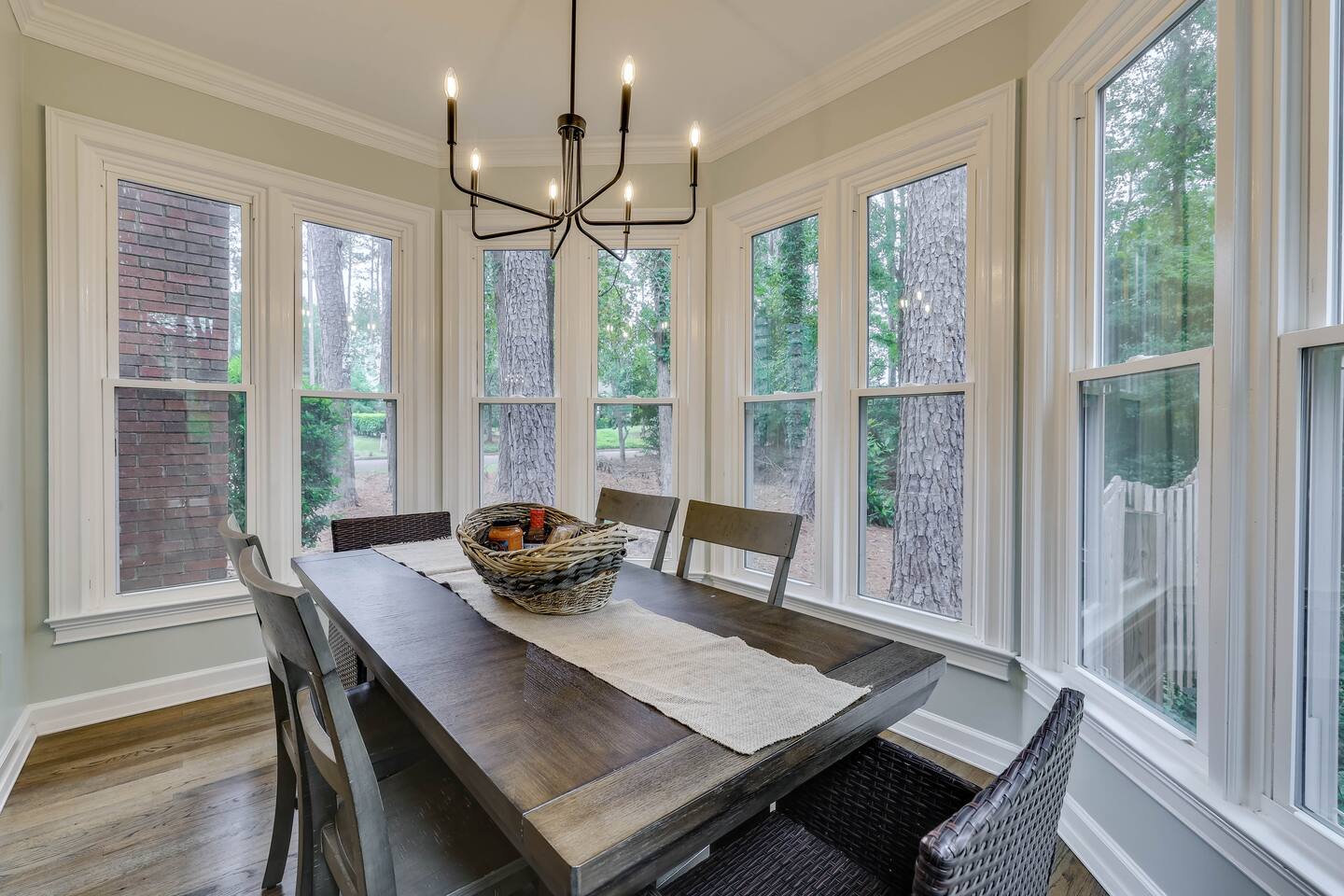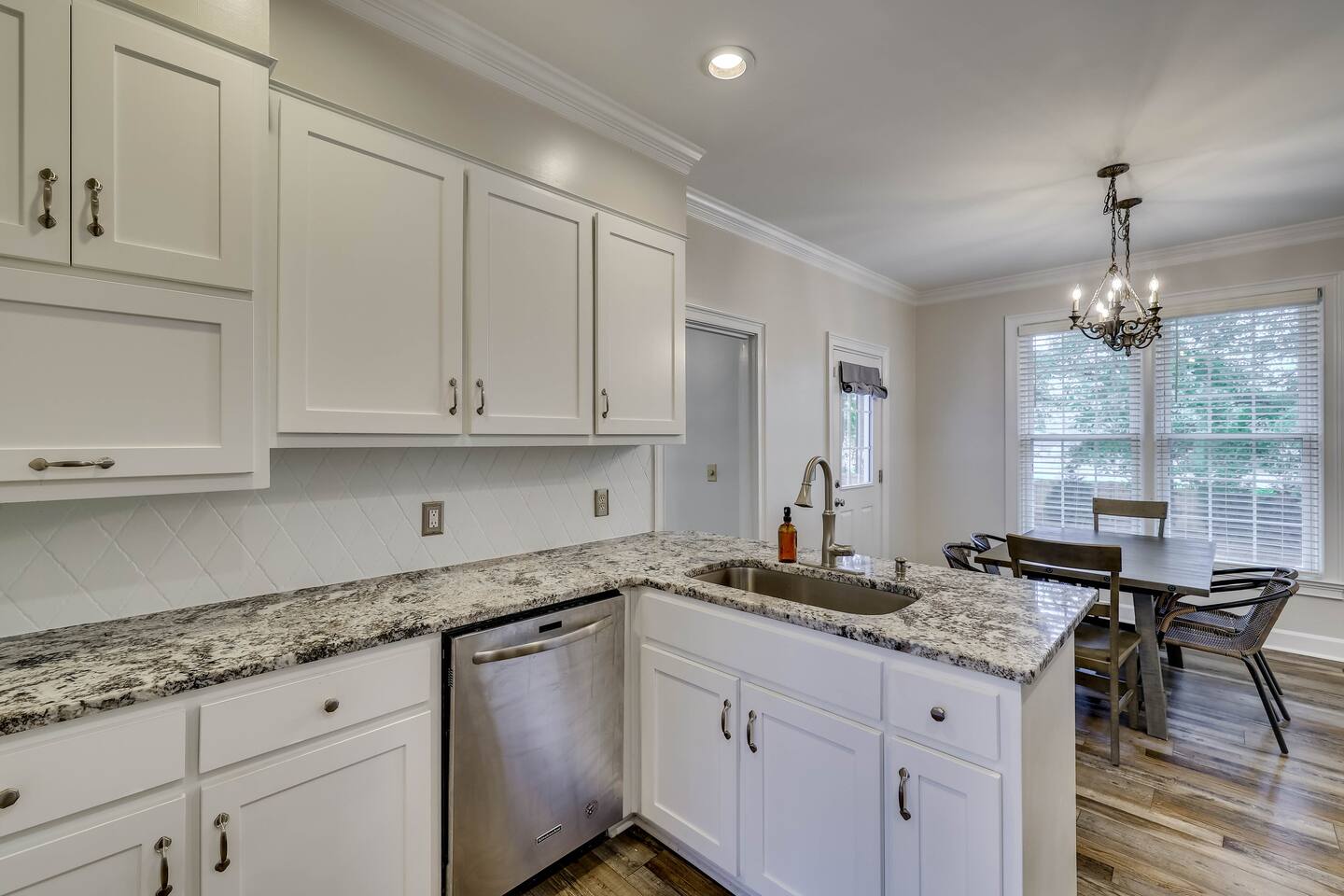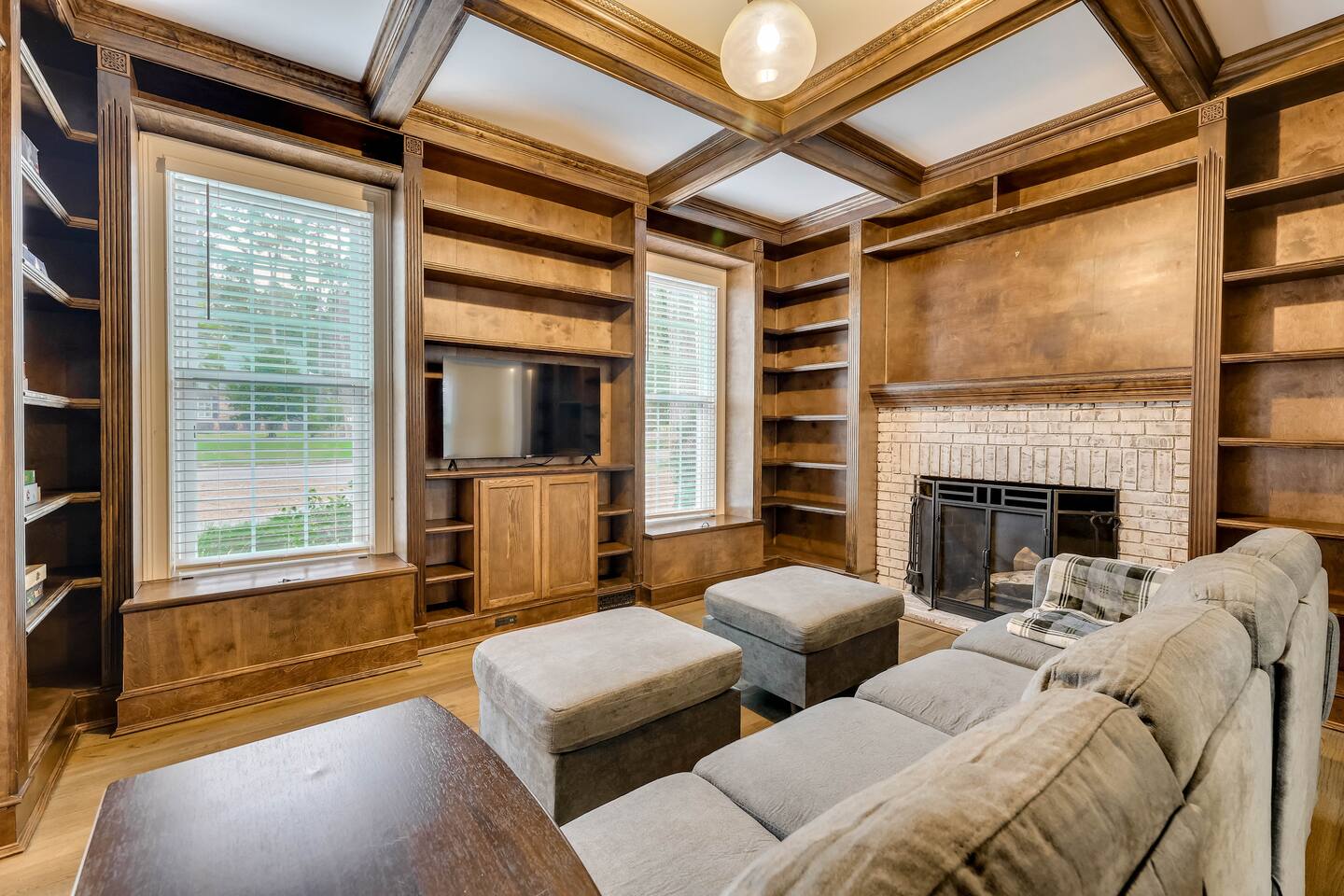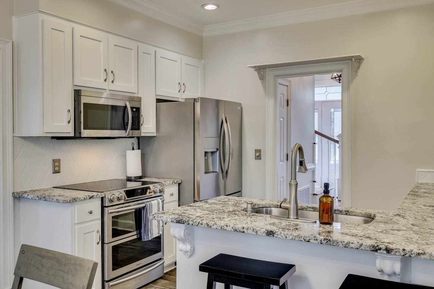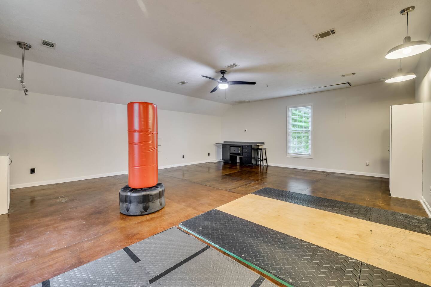 Our properties includes amenities galore! Downstairs Kitchen: Granite counter tops, stainless steal appliances, fully stocked, fridge, freezer, oven, stove, dishwasher Kitchenette: Coffee area, sink Living room 1: Giant sectional sofa set, coffee table, two side tables, flat screen TV Living room 2: Seating for 2 and flat screen TV Dining room: Dining room table seats six Library: Newly added couch, TV/Firestick, and end table. **New photos pending** Workspace: Built in desk Laundry: New washer and dryer Half bathroom Upstairs Bedroom 1: King bed, two dressers, two nightstands, ensuite bath w/walk in shower, walk in closet, TV w/Firestick Bedroom 2: Queen bed, dresser, two nightstands, closet, TV w/Firestick Bedroom 3: Two full beds, dresser, nightstand, closet, TV w/Firestick. **New photos pending** Bedroom 4: Two full beds, dresser, nightstand, closet, TV w/Firestick. **New photos pending** Hall Bath: Full bathroom with tub style shower Gym: Giant space for working out/yoga/quiet space Exterior Yard: Fenced in yard with back patio Parking: Pull through driveway fits up to 4 vehicles Garage: Please note the garage will be locked and is NOT available for guest use.