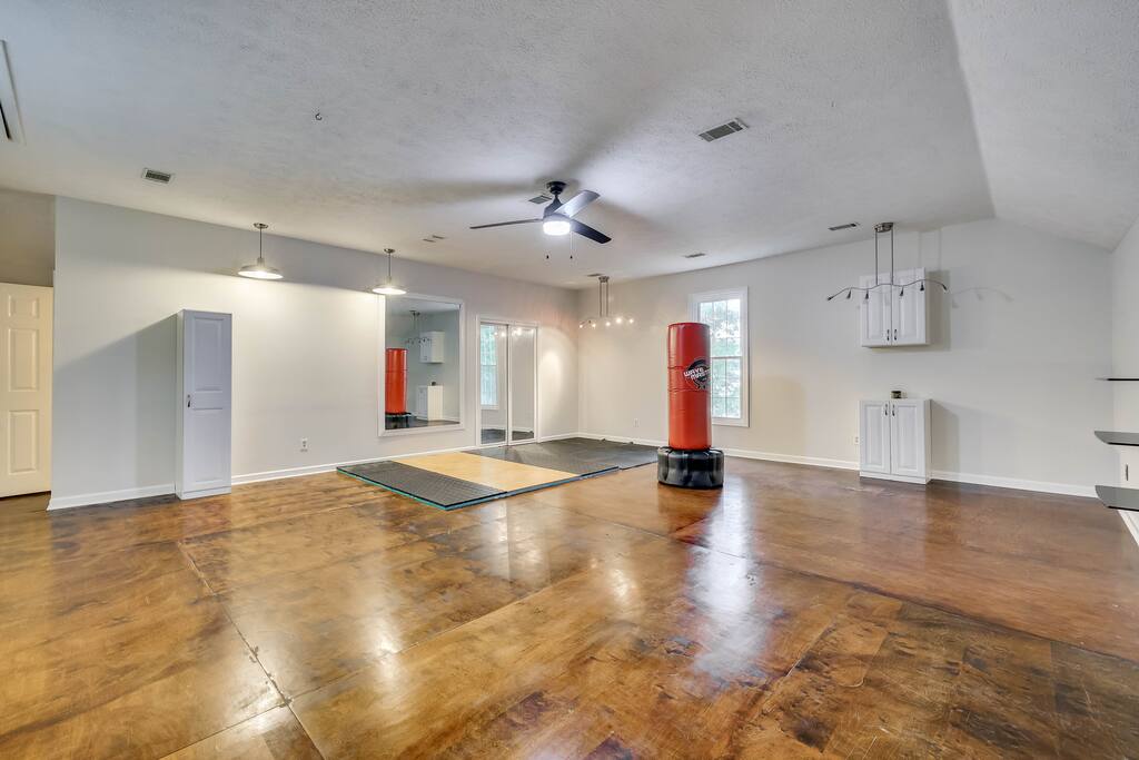 Relax at this peaceful and ultra spacious 3,275 sq ft two-story estate in Evans, GA. Features master suite with walk-in shower, gym, coffee nook, patio, giant fenced back yard, pull through driveway. Perfect for families, and groups. Located in the well-established and walkable Woodbridge subdivision off Washington Rd. 3 min to Walmart 5 min to Evans Town Center park, shopping, restaurants, and grocery stores 20 min to Downtown Augusta, Fort Eisenhower, Augusta National Golf Course